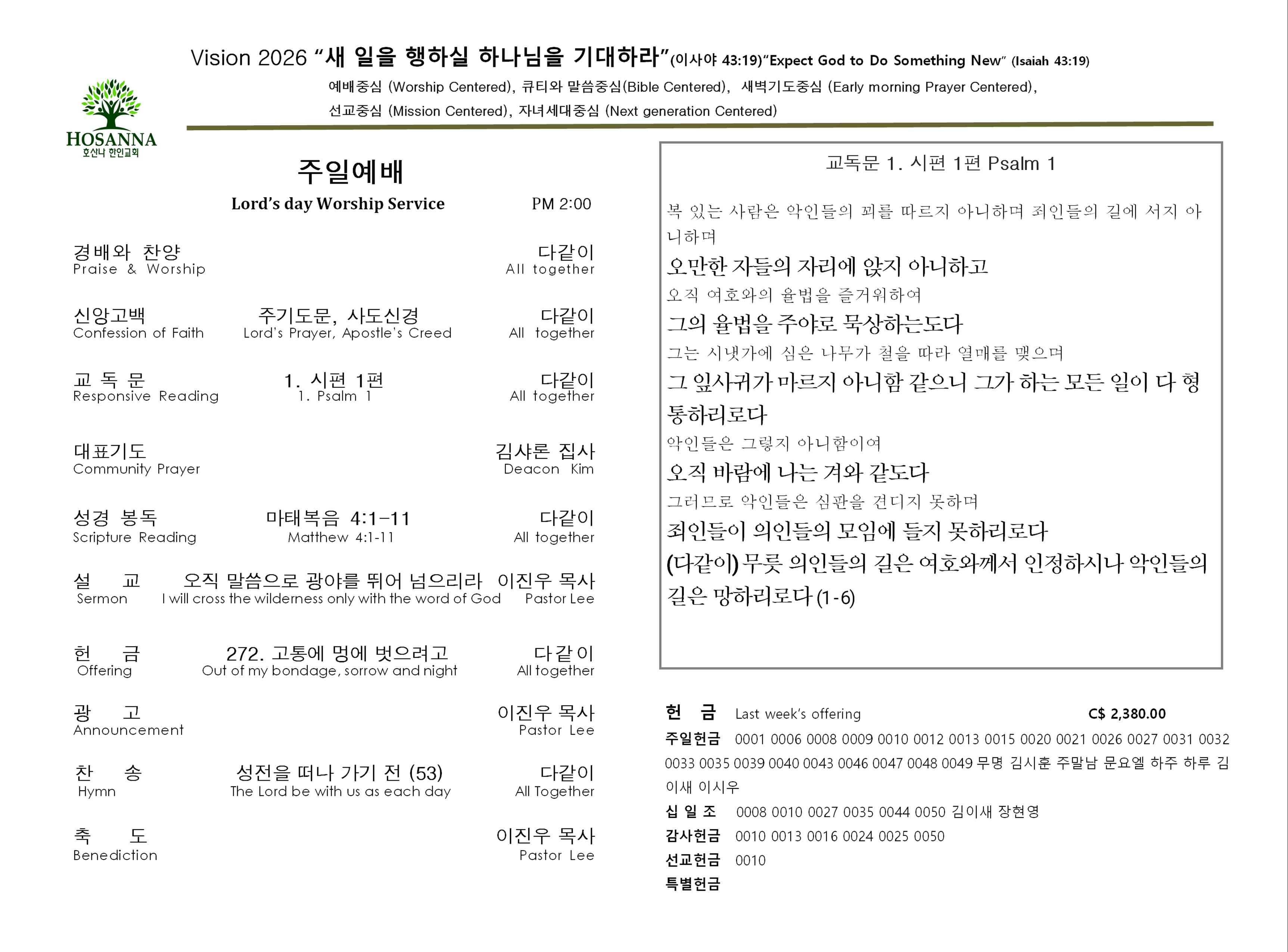 © 밴쿠버호산나한인교회 Hosanna Hanin Community Church. 2026 All Rights Reserved.