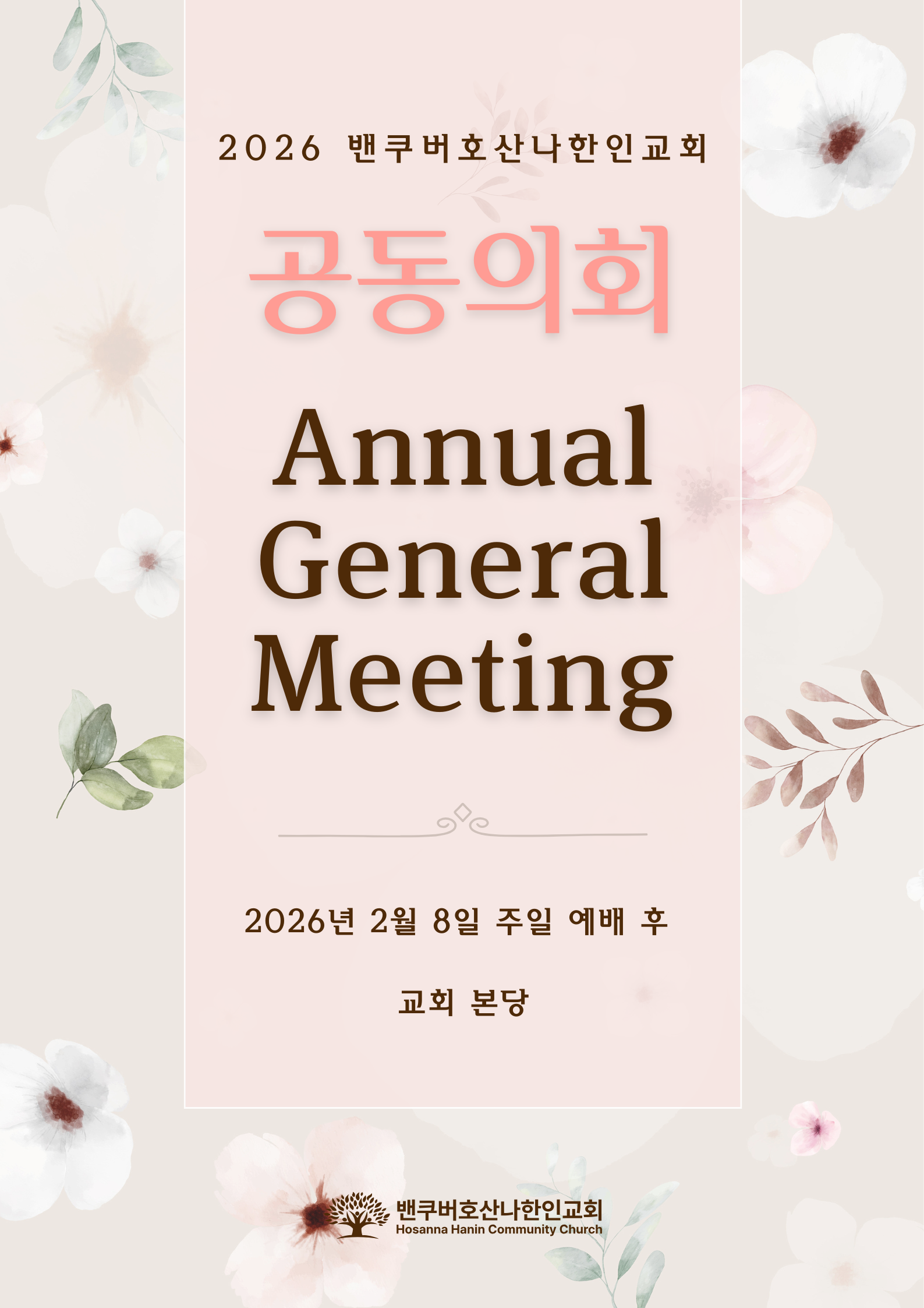 아래와 같이 2026년 정기 공동의회를 개최합니다.